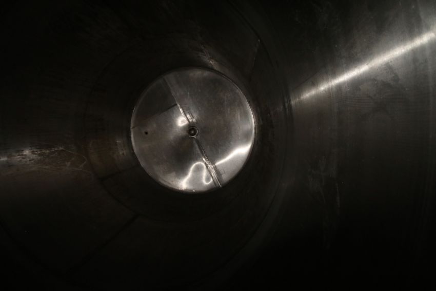 { Choice of lots: 316, 317 } } Indian 6,000 Gal. S/S Single Wall Vertical Silo, S/N JN2619, Tank Dimensions 8’ Dia. x 16’ H
