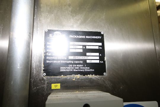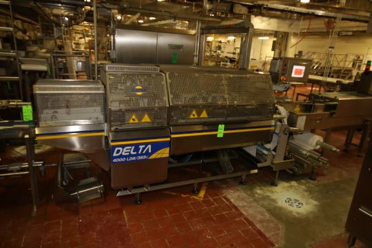{ Choice of lots: 227, 228 } } } 2014 Ilapak Delta 4000 LDR/3SSc Horizontal Flow Wrapper, S/N 640290008, with Walking Beam Long Dwell Head with Gusset Bag Attachment, Automatic Smart Belt Feeder, Print Registered Film, with Web Directional Zipper Applicator, and Unwind Unit with Punching Device (Waffle Line)