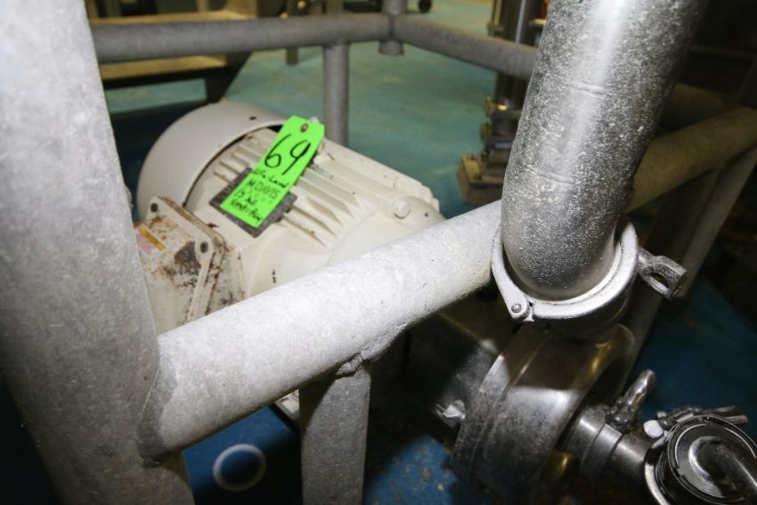 Alfa Laval 15 hp Centrifugal Pump with 2-1/2" x 1-1/2" Clamp Type S/S Head, Sterling 15 hp Motor, 3510 RPM, 230/460 V, 3 Phase and S/S Blow Down