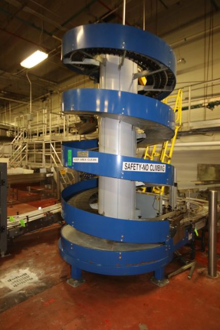 2009 Ryson 4-Tier Spiral Conveyor with 15” W Belt, 11’ Tall, Allen Bradley MicroLogix 1100 PLC and (4) Allen Bradley PowerFlex 4 VFD's