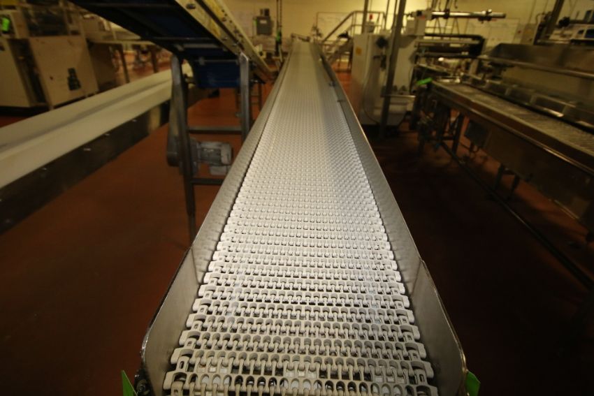 { Choice of lots: 265, 266 } } ~19 ft. L S/S Conveyor with 12" W Intralox Belt, Drive, S/S Side Walls and S/S Legs
