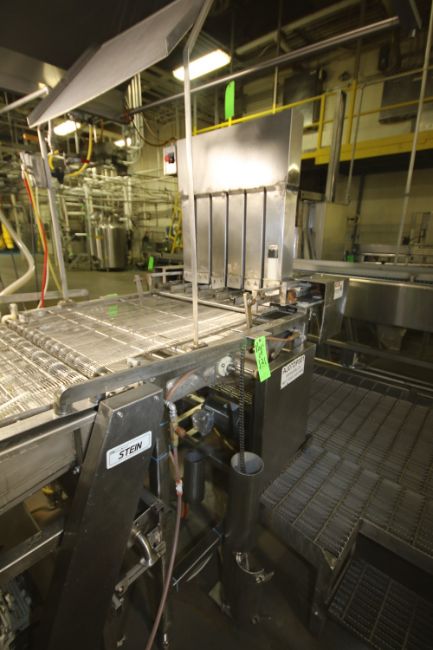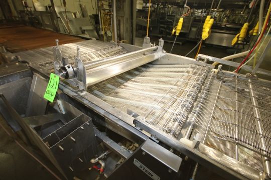 FMC Stein APB All Purpose Batter Applicator, Model APB-40, S/N 394 with S/S Mesh Belt, Ampco 2 hp/1.5 hp S/S Clad Pump, 1750 RPM/1450 RPM, ~8" H x 17" W S/S Rework Tank includes S/S Depositor with 6-Station Bread Magazine and S/S Dust Hood
