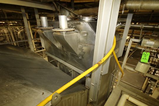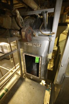 { Group of lots: 55, 56, 57, 58, 59 } } } S/S Cone-Bottom Batter Hopper with Dual S/S Discharge Chutes and Rotary Star Valve, Overall Dimensions ~72" L x 36" W x 96" H (ID #DM17BN12)