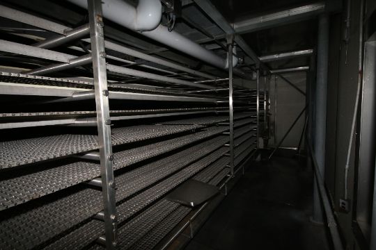 { Choice of lots: 201, 202 } } } Cook Mfg. 50Pass Freezer, S/N 09003438 with 80" W S/S Belt, 5" Clearance Deck Spacing, Overall Dimensions ~35 ft L x 84" H