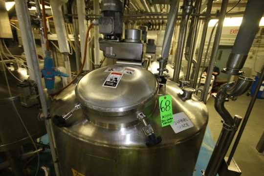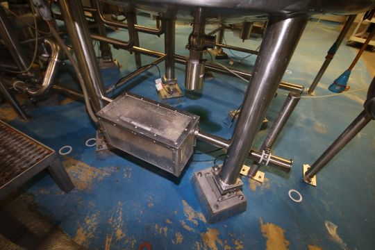 { Choice of lots: 67, 68 } } } 2011 Walker 150 Gal. 316 S/S Dome-Top Processor, Model MT-202, S/N WEP-93310-2 with Scrape Surface Agitator, 2011 Alfa Laval 2-1/2" All S/S Air Valve, 150 psig @ 338 Degree F, Mounted on Mettler Toledo Load Cells (Pancake System Mixer #2)