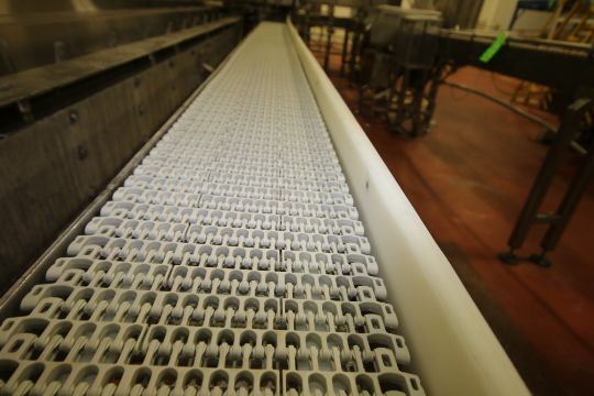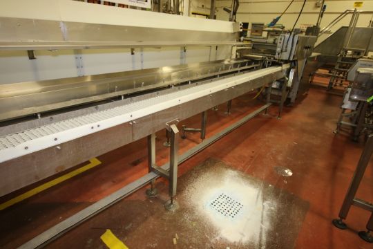 ~20.5 ft.L Each Infeed Conveyor into French Toast Wrappers with 9" W Intralox Belt, S/S Legs, Drive (Pack-Off Conveyor Stations) (Total Conveyor ~61.5 ft.)