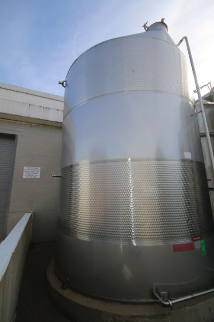 Mueller 12,000 Gal. S/S Silo, Model DF, S/N F-40651 with 2-Zone Dimple Jacket, S/S Exterior, Overall Dims.: 15’ H x 12’ Dia