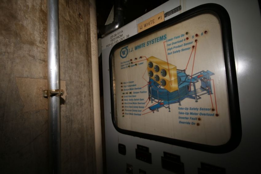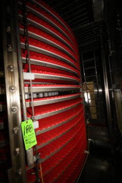 { Choice of lots: 188, 189 } } } I.J. White System Spiral Freezer, with 17-Tiers, Aprox. 2-1/2” Deck Spacing, Regal Interlock Belt, Frame Dims.: 9’9” H x 14’ Dia., Enclosure Dims.: 17’ L x 19’5” W x 21’ H, Single Bottom Infeed and Single Top Outfeed, Allen Bradley PLC Controls with (3) Sets of (2) Vertical Krack Blowers (Freezer #1)