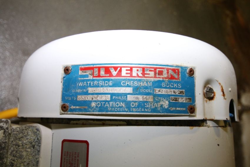 { Choice of lots: 28, 29 } } } Silverson 10 hp High Shear Pump, Model 450LS, S/N 450LSR2504 with 2" x 2" Clamp Type S/S Head and 3500 RPM Motor, 208-230/460 V, 3 Phase
