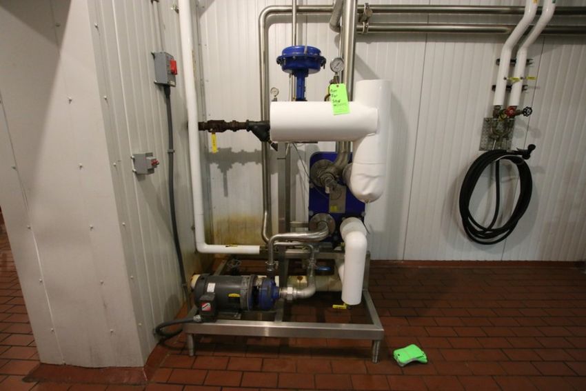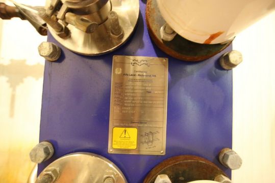 { Group of lots: 43, 44, 45, 46, 47, 48, 49, 50, 51, 52 } } 2010 Alfa Laval Recirculation Skid, Model TS6-MFG, S/N 30112-51672, 150 PSI@ 320 F, -20 F @ 150 PSI, 11.06SQ. FT., 65 MM W/14 0.60 MM PLTS, ORDER 751219