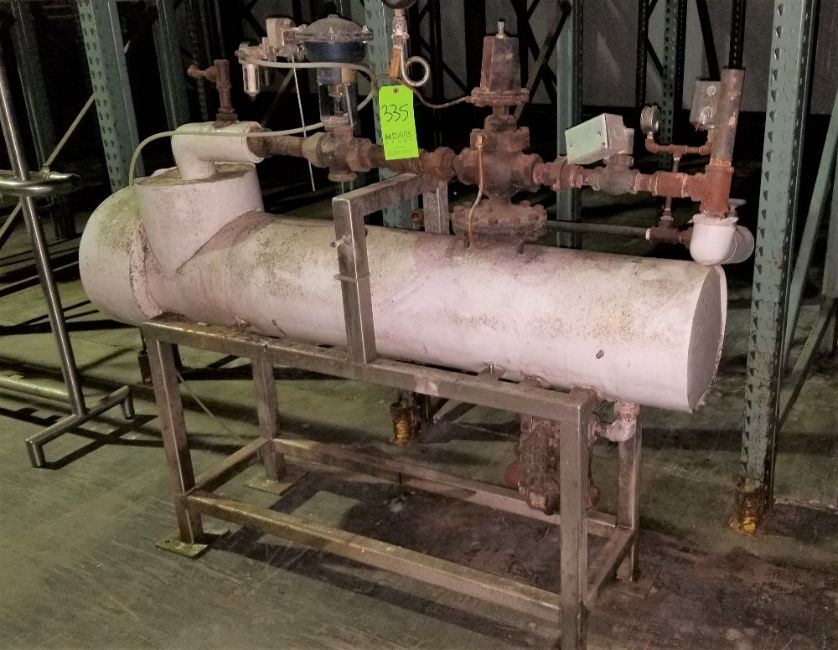 { Group of lots: 335, 336 } } ~68" L x 12" W Shell and Tube Heat Exchanger, Mounted on Stainless Rack