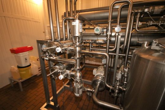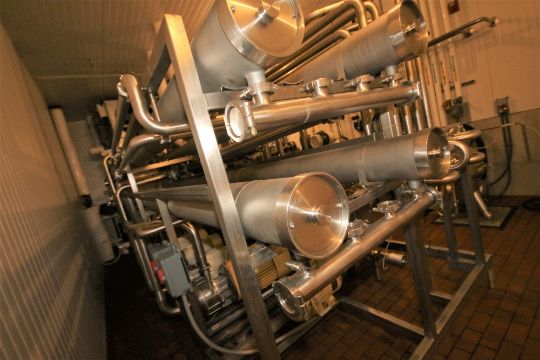 2010 Complete Filtration Resources (CFR) 4 – Pass S/S RO System, Job #13715-0002, Complete with (4) 8” x 18 ft L S/S Tubes, Includes 100 Gal. S/S Tank, (2) S/S Shell & Tube Heat Exchangers, Steam Concentrate System, (2) Inline S/S Filters, (5) Alfa Laval Centrifugal Pumps up to 40 hp with Allen Bradley VFD’s, ABB Flow Meter, Allen Bradley Logix 5561 PLC with PanelView Plus 1500 Display, WCB Air Valves, Other Related Valves and Piping Surrounding RO System Only)