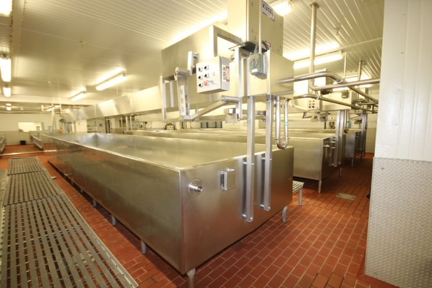 BULK BID LOT #95 and LOT #100 - CHEESE VAT SYSTEM INCLUDES: (3) KUSEL 5,000 GAL. CHEESE VATS, ALFA LAVAL AIR VALVE MANIFOLD WITH PIPING AND OPERATOR'S PLATFORM (NOTE: IF INTERESTED IN BULK PLEASE CONTACT AUCTIONEER)