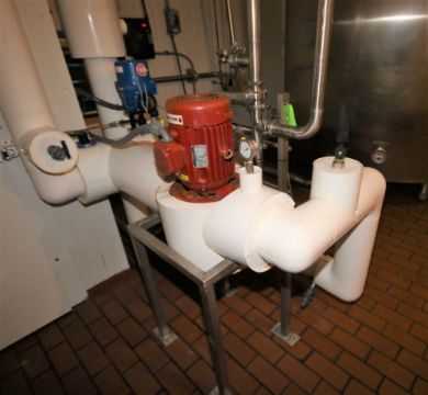 2010 APV S/S Small Plate Press, Model V017R-14, SN G2010000068, 150 psig, Design Temp. 239 Degree F with (33) S/S Plates, Temperature Sensor, Armstrong 3 hp Circulating Pump with Valve and Rack (Silo Room) (NOTE: Piping Not Included)