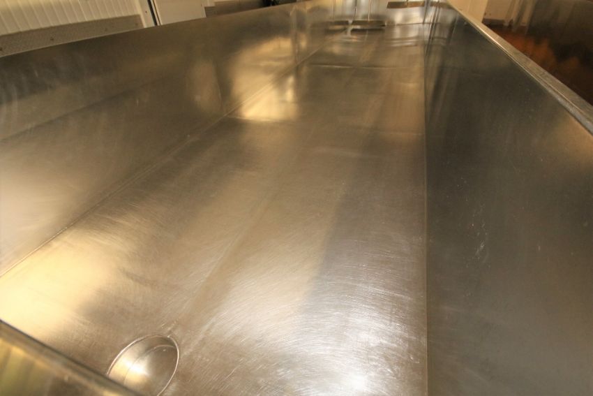Kusel ~5,000 Gal. Open Top S/S Cheese Vat, Model 348538CCVESA, S/N 1094324 with Overhead Bridge Agitation, Agitators Blades, Valves and Allen Bradley MicroLogix 1000 PLC Controls and Magnetek and Yaskawa VFD's, 230 V, 3 Phase, Vat Dimensions ~33 ft. 8" L x 80" W x 36? H (Vat #1)