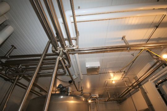 ~375 ft. Installed 2" and 2-1/2" S/S Piping Throughout RO/Silo Room Only includes: S/S Piping, Alfa Laval 3-Way S/S Air Valve, (4) Check Valves, (2) Flowverter Stations, (1) Butterfly Vale, Fittings and Hangers (NOTE: Does Not Include Any Piping Surrounding RO System and in HTST Room)