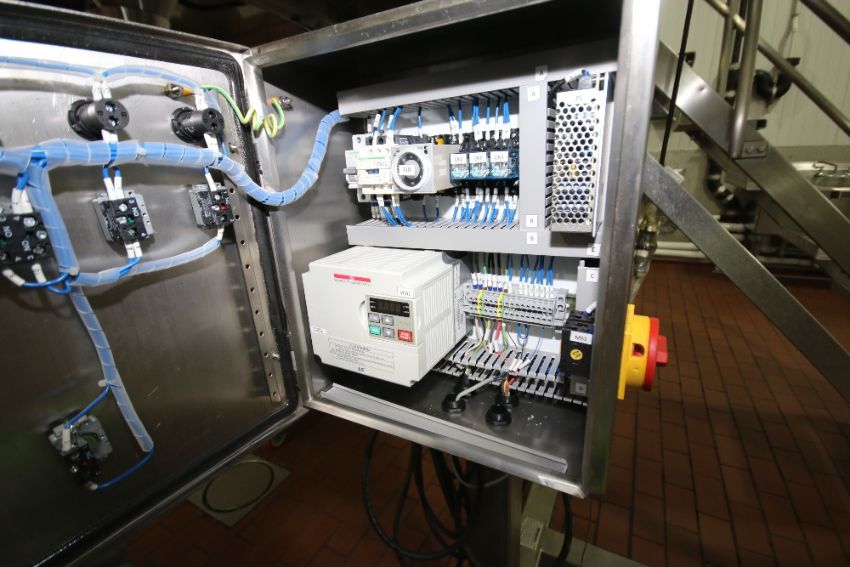 2010 Weighpack 168" H S/S Inclined Conveyor with 16" W Belt with Flights, Arpin Feed and IG5 VFD Controls