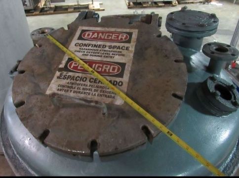 Howard Corporation 500 Gallon Stainless Steel Reactor with mild steel jacket. Shell 50PSI work pressure, 82PSI test pressure at 600F. Jacket 19PSI work pressure and 31 PSI test pressure at 600F. 2ft Heavy Duty manhole cover with 1" thickness with various openings(Located in Iowa)***EUSA***