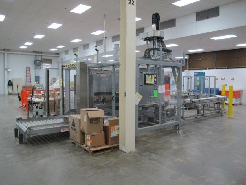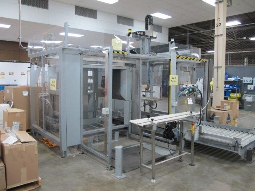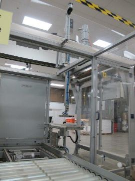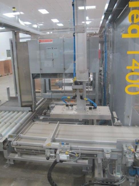 Skinetta Low Level Palletizer, Model # PalTeq 1400, S/N 300178, includes empty pallet magazine and slip sheet inserter / servo controllers / AB PLC (Located in Michigan)***NSP***