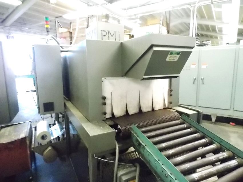 PMI Tray Shrinkwrapper with Heat Tunnel Model: CSI-30TW Serial: 00397, Inline Tray Shrinkwrapper with Heat Tunnel, Clear Film Only, Approx. 30 inch wide Seal Bar Machine, 23? wide belt, top and bottom film feed, wraps up to 15 trays per minute, 84 inch long heat tunnel, Support/Sales/Parts is provided by Arpac in Chicago, Plastic Matte Belt on Tunnel, 480 Volts, Temperature Controls for Seal Bar and Heat Tunnel(Located in North Carolina) ***FBEV***