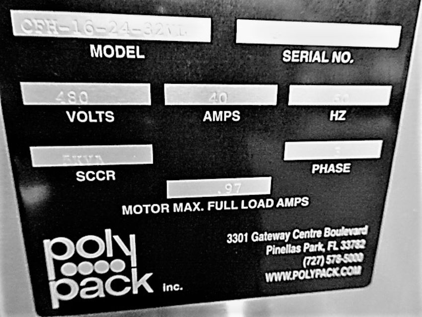 PolyPack Shrink Wrapper & Heat Tunnel, Model # CFH 16-24-VL, S/N 3477, continuous motion wrapping / integrated MGS pad placer (removable) / last running unsupported water bottles / AB PLC(Located in South Carolina) ***NSP***