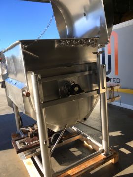 Crepaco Stainless Steel Jacketed Ribbon Blender Serial: C-4041, Jacket rating to 75 PSI, Internal Dimensions 58 inch long x 46 inch wide x 48 inch tall, Single Sigma Style Blade, Tope Grate, Stainless Steel Lid, Hydraulic Drive (Located in North Carolina) ***FBEV***