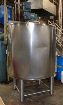 400-Gallon Stainless Steel, Jacketed and insulated process mix tank with scrape surface mixing arms and a SEW gear drive run by a 2 HP motor. Board certified by Specific Mechanical Systems Ltd.; Maximum Working Pressure is 50 PSI at 298 Degrees F; and MDMI = -20 F at 50 PSI. The tank Manufacture date is 2006 but has been unused for most of the time and its like new. Motor runs on 208/360 V, 60 Hz, with 6.86 or 3.96 Amps. Motor RPM is 1720 and SEW gear drive ratio is 32:1. Comes on four legs; split half circle top doors with viewing windows. 3" opening at the bottom, and 3" opening on top. (Rigging and loading fees included in the selling Price - palletizing extra $145)(Located in Iowa)***EUSA***
