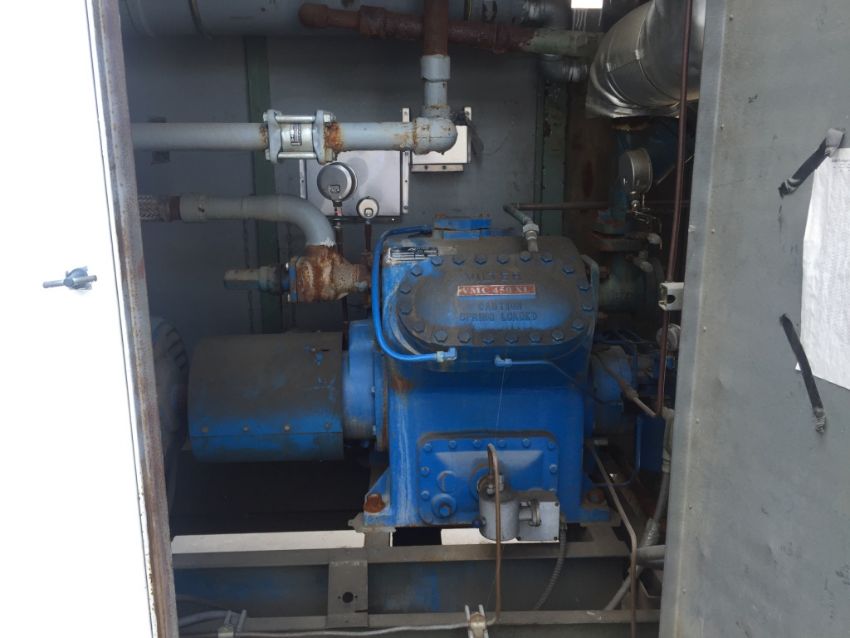 Vilter 454XL 4 Cylinder Freon Compressors Model: 454 XLB Serial: 81564R, Last running at food facility, Compressor has an enclosed building with frame, Removed due to closure of plant, 60HP motor(Located in North Carolina) ***FBEV***