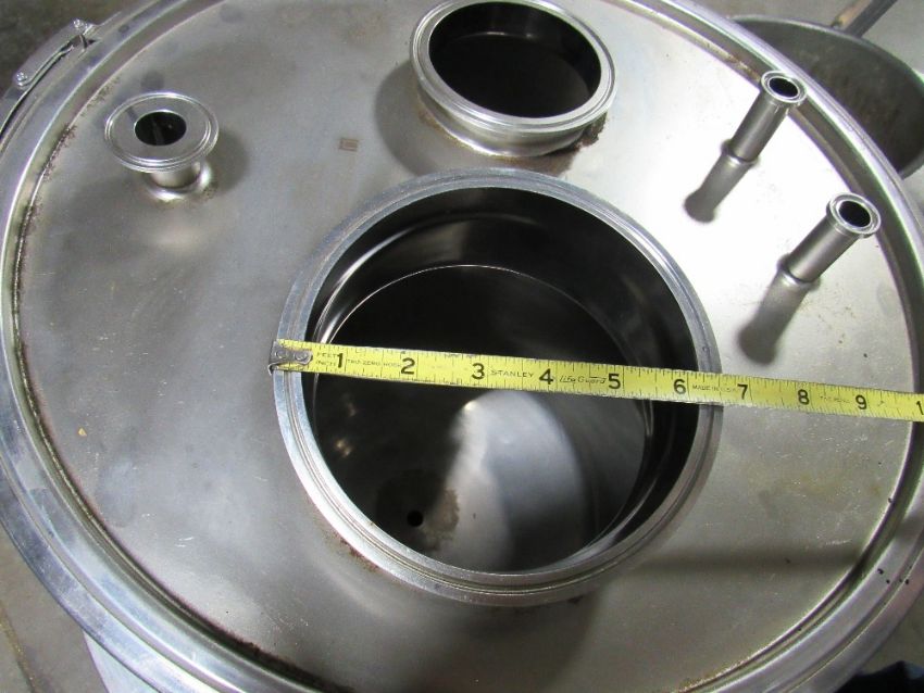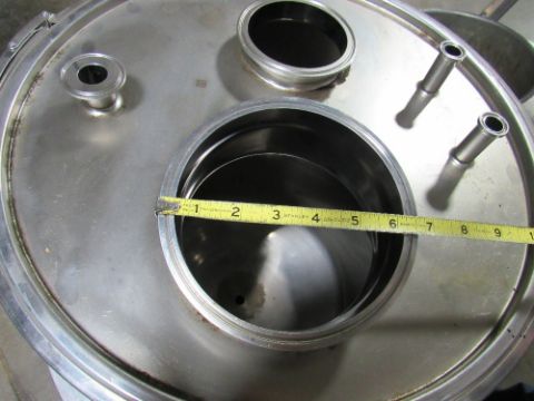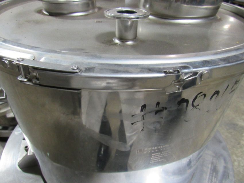 30-Gallon Eagle 304 Staihless Steel Pharma Finish Tank on Custom Base with Clamped on Cover and several openings. (Rigging and loading fees included in the selling price - optional Palletizing $35.00) (Located in Iowa)***EUSA***