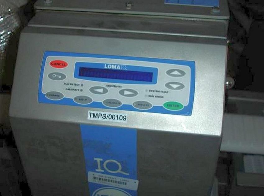 Loma Metal Detector, Model: IQ, Serial: KIMD12264, Unit comes with conveyor. Conveyor is 50 inches long, 4 inches wide. Pass through opening is 5 3/4 inches wide X 6 1/2 inches tall (Located in NY)***NYINC***