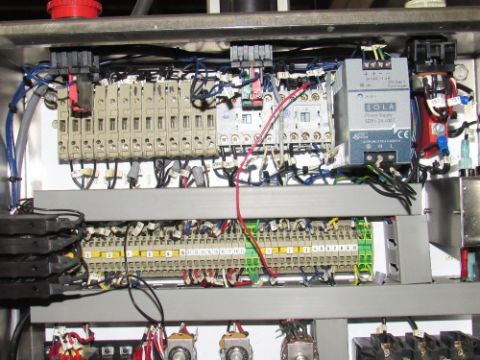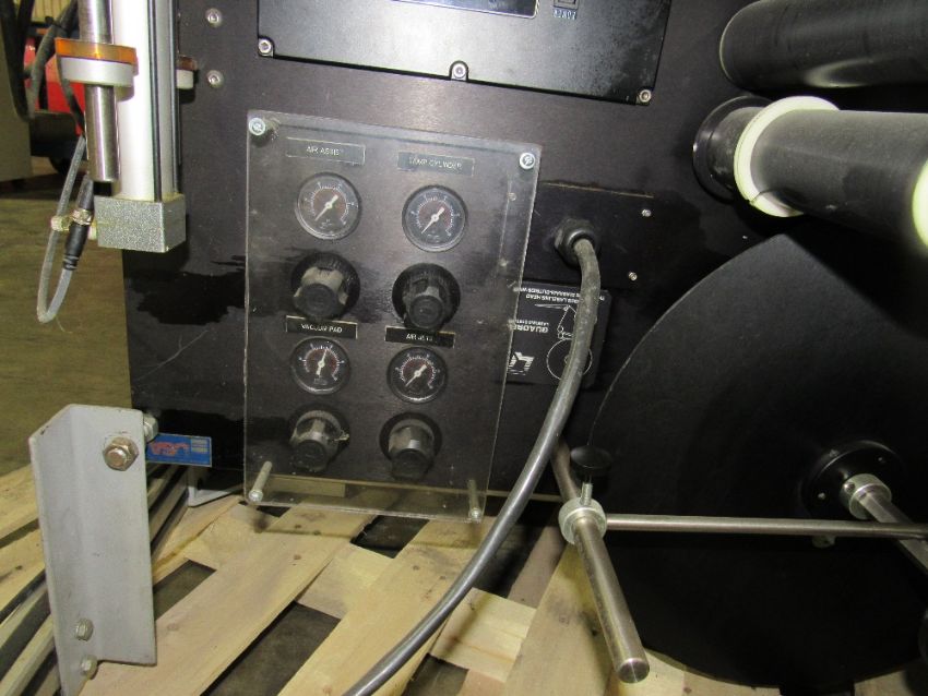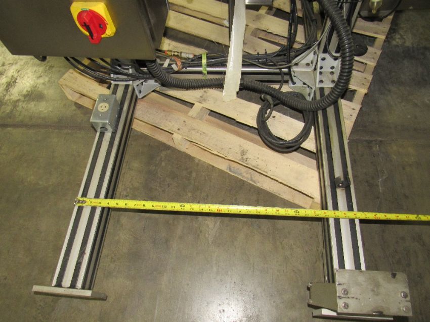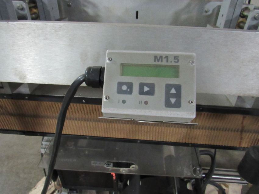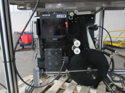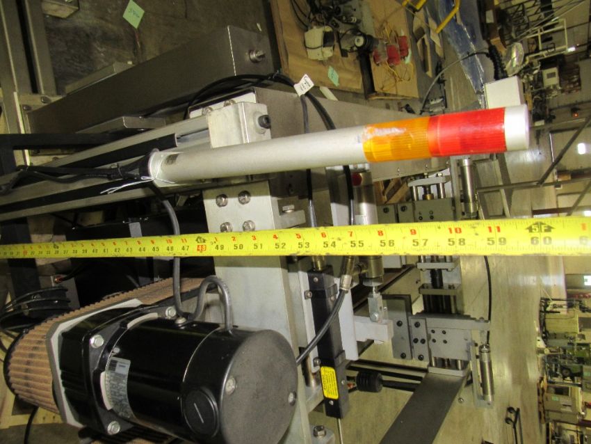 Bottom Labeler with Sato Label Printer, Pneumatic Cylinder for label application, belt side conveyor, with full speed controller, label counters, sensors and electrical control box - was used to label bottom of glass wax jars. (Rigging and loading fees in the selling price. Optional Palletizing $125). (Located in Iowa)***EUSA***