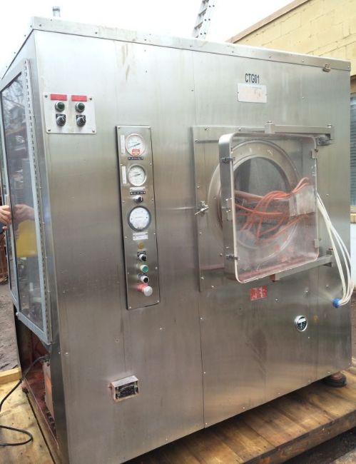 Thomas Engineering 60" Accelacota Coating System. Model: 60-111, Serial: 577 60" Diameter. System comes with Spray Arm, Air Handler (steam), Exhaust Fan. Blower is driven by a 25 Hp 230/460 Volt, 60 Hz, 3 Phase Motor. (Located in NY)***NYINC***