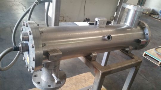 Aquionics Ultra-Violet Water Treatment Unit Model: PMD200C/1/4A D Serial: 050126, Rated Pressure: 10 Bar, Rated Temperature: 80ºC, Input Rating: Supply 120 Volt, Lamp Rating: 610 Volt 4.2 Amps 2.5 kWatts, Mounted on Stainless Steel Frame (Located in North Carolina) ***FBEV***