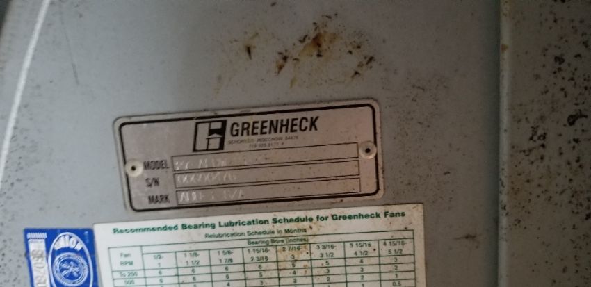 EngA model: FWD-802-CO Air Handling System with (2) COPELAND 4DL3-1500-TSK reciprocating compressors each with capacity of (Btu/hr) 52300 and Greenheck 15 HP Blower (Rigging $5,000)