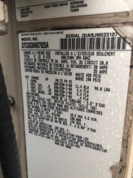York Rooftop HVAC Unit, Model D7CG036N07925A, S/N NBJM023107 with R22 Refrigerant, 208/230 V (Rigging Cost $300.00)