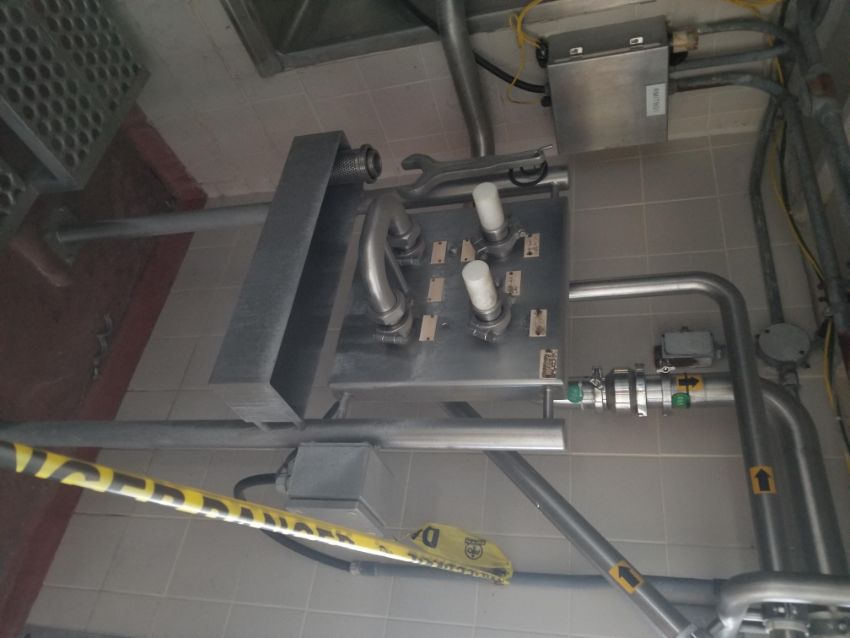 Remainder of Installed S/S Process Piping with Thermometers, Air Valves, Fittings and More from Receiving to Last Disconnect at Silo and CIP (Rigging Cost $1,000.00) (SUBJECT TO BULK BID IN LOT 10A)