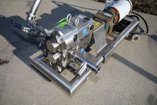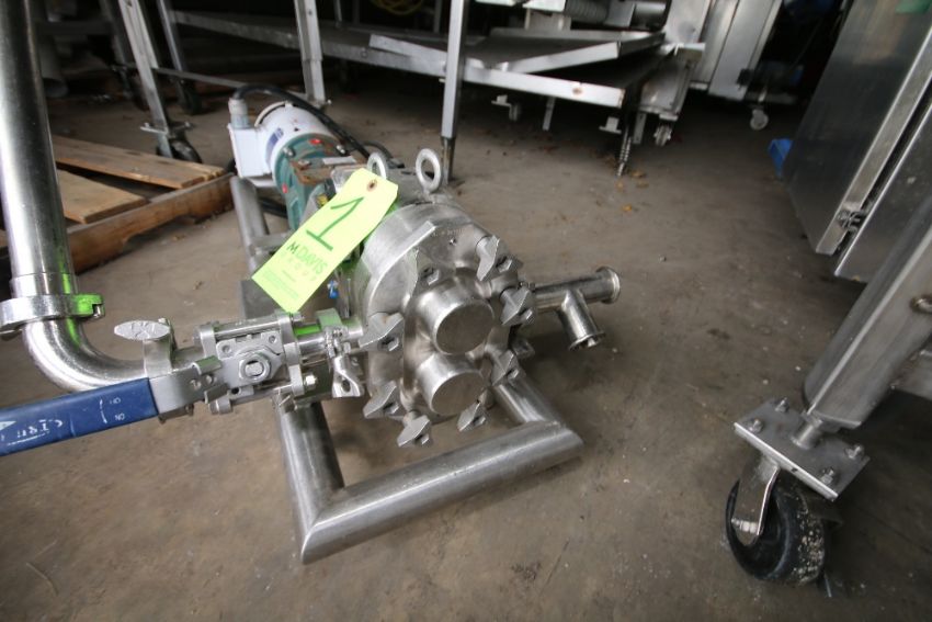 2014 WCB SPX 2 hp Positive Displacement Pump, M/N 030U1, S/N 1000002900739, with 1-1/2" S/S Clamp Type Inlet/Outlet, Mounted on S/S Skid with Ball Valve, Elbow, and T-Fitting (NOTE: Recently Uninstalled; Located in Storage Building)