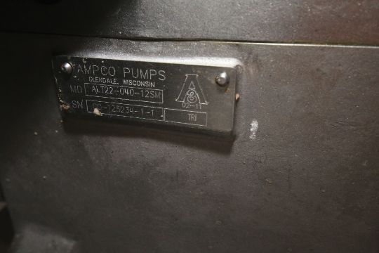 Ampco 2 hp Positive Displacement Pump, M/N PEZP1-030, S/N PE-1082-R1-2, with 1-1/2" Clamp Type S/S Inlet/Outlet, with Baldor 1755 RPM Motor and S/S Motor Cover, Mounted on S/S Skid