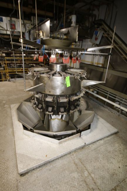 Ishida 14-Station Scale Filler, M/N CCW-RZ-214W-S/60-WP, S/N P 796-3485, with S/S Frame and S/S Discharge Funnel (LOCATED ON MEZZANINE) (NOTE: BUCKETS AND PARTS WILL BE INCLUDED WITH PURCHASE)