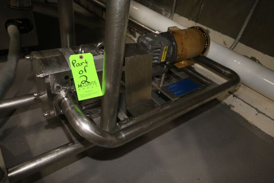 Ampco 1.5 hp Positive Displacement Pump, M/N ALT22-040-125M, S/N CC 125234-1-1, with Sharpsville 30 gal. S/S Tank, S/N 93-0593-VTC15-30-T-304, Mounted on S/S Frame