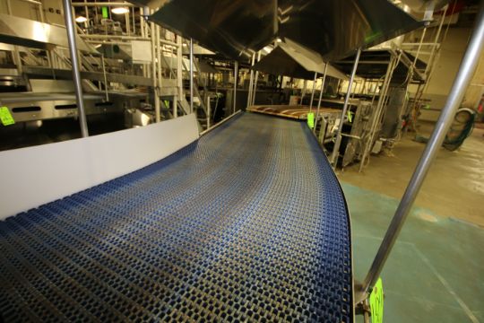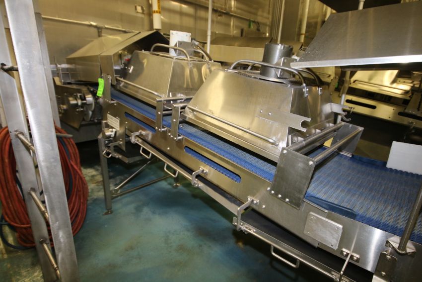 ~17 ft. L S/S Discharge Conveyor with 32" W Intralox Belt, Incline, (2) Cryo-Jet Cooler Freezer Blowers, Model GJ3230SS with .5 hp Motor, 1725 RPM, (1) Drive, S/S Dust Hood and S/S Drain Pan (Rigging Included in Hammer Price)