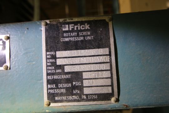 Frick 300 hp Screw Ammonia Compressor, Frame Model RWBII496B, S/N S0066RFMFTHAA03 with 3570 RPM Motor, RWBII Plus Touch Screen Controls and Ram Starter, 460V 3 Phase, (Unit 496 South) (Site #204)(THIS LOT IS SUBJECT TO THE BULK BID IN LOT 26)