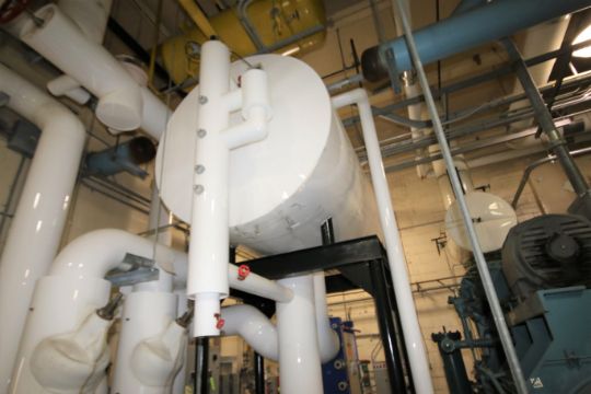 2010 Ammonia (NH3) Cooled Glycol System with Alfa Laval Model T20-BWFS, SN 30112-51394 Plate Press, Top Mounted ~1,500 Gal. Holding Tank, (Tank Dimensions~105" L x 70" ), Top Mounted Ammonia Accumulator, (2) Armstrong 50 hp Circulation Pumps, Related Valves and Piping and IRS Controls with Cutler Hammer VFD (Site 240)(THIS LOT IS SUBJECT TO THE BULK BID IN LOT 26)