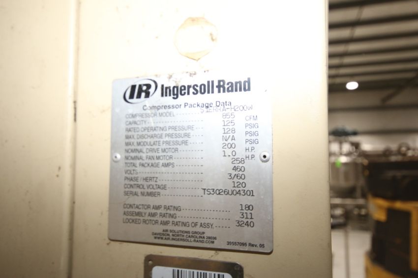 Ingersoll Rand 200 hp Water Cooled Oil-Free Screw Air Compressor, Model Sierra-H200W, S/N TS3026U04301, 855 CFM Capacity, 125 psig, 460 V, 3 Phase with Ingersoll Rand Intellisys Touchpad Display, Metered Hrs. 50,920 (Compressor 3) (Additional $500 Fee Applies For Loading) (LOCATED IN PITTSBURGH, PA) (Site #166)
