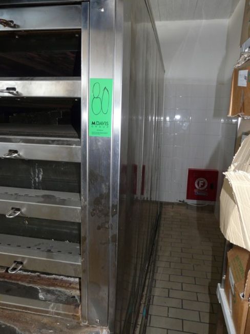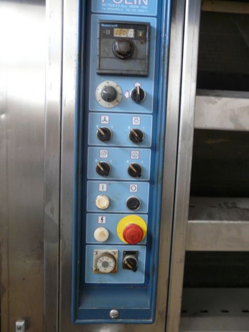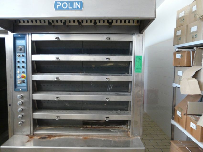 English: POLIN Oven With 10 Stations, Humidity, Gas Burner, Y.O.M.: 2003, Construction Stainless Steel,170x315+50cm x 225 + Motor, Y.O.M.: 2003 Model: DRAGO896 with Trolley and 10 Racks . Greek: Φούρνος τελλαροτός 10 θέσεων μάρκα: POLIN, με υγρασία, με καυστήρα υγραερίου έτος: 2003 όλος ανοξείδοτος 170Χ315 + 50 καπέλο απορόφισης Χ 225 + μοτέρ, έτος: 2003 μοντέλο: DRAGO896 , με καρότσι με δέκα τελλάρα