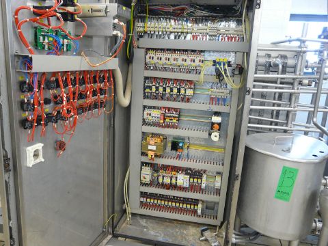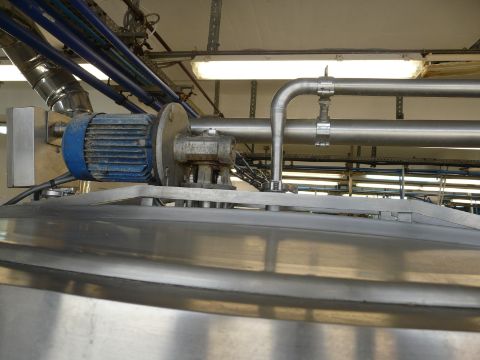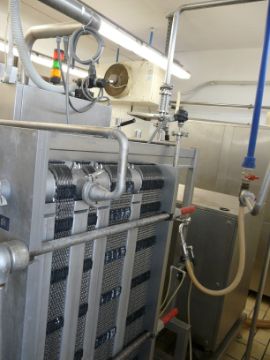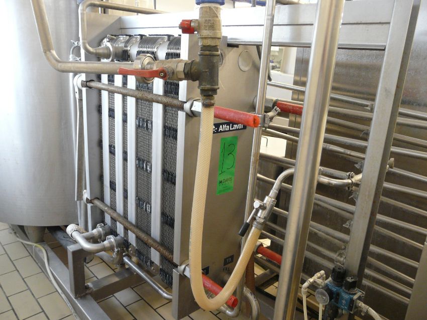 English: TETRA PAK HOYER HTST SYSTEM, 1200 Pasteurizer for Ice Cream, Contains 2 x Tanks with Agitators,1 Plate Heat Exchanger ALFA LAVAL Model: CLIP 6-RM, Homogenizer Tetra Pak Model: XR3 with Manual Book, 2 Product Pumps, 1 Water Pump, 1 Pump for Feeding the Material Through a Cone Type Pipe, Control Panel, 1 GAS Boiler Make: SIME, 1 Tank for Returning the Mixture, It is on Two Stainless Steel Pallets Dimensions: 520x160x20 and 50x160x20. Y.O.M.: 2001 Greek: Ολοκλρωμένο σύστημα παστερίωσης και ομογενοποίησης HTST 1200 μάρκας TETRA PACK HOYER.Tο σύστημα αποτελείται απο 2 δεξαμενές με αναδευτήρα,1 ενναλλάκτη ALFA LAVALμοντέλο CLIP 6-RM,1 ομογενοποιητή TETRA PACK μοντέλο XR3 υπάρχει βιβλίο οδηγιών,2 αντλίες μεταφοράς προιόντος,1 αντλία νερού,1αντλία τροφοδοσίας πρώτων υλών με χοάνι,1 ηλεκτρολογικό πίνακα ,1 λέβητα με καυστήρα γκαζιού μάρκα SIME,1 κάδο επιστροφής μίγματος,είναι πάνω σε δύο βάσεις ανοξείδωτες με διαστάσεις520χ160χ20 και 50χ160χ20,έτος κατασκευής 2001