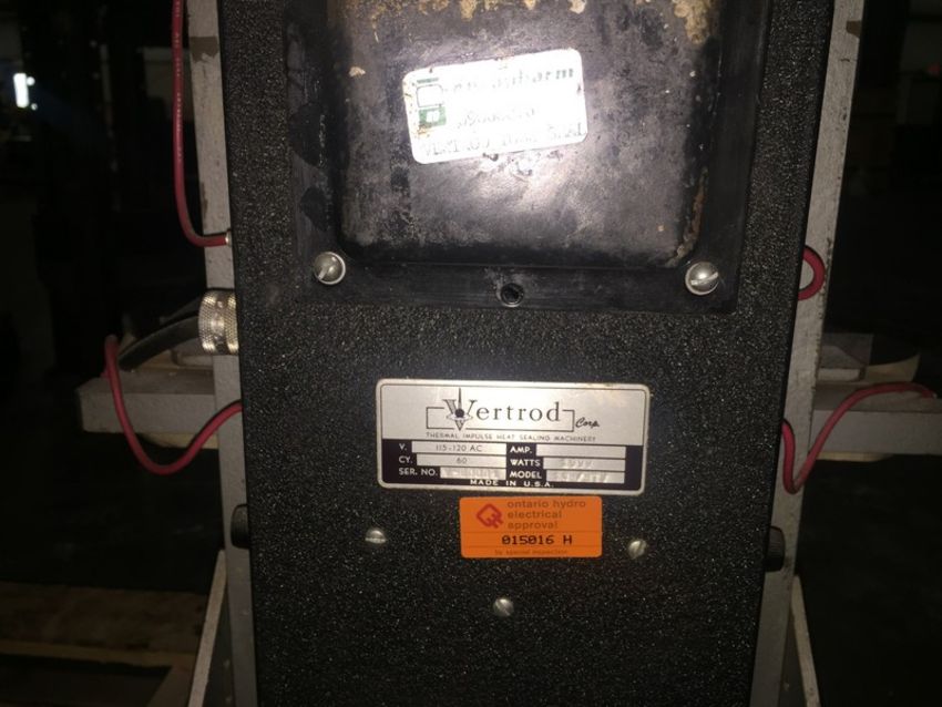Vertrod Model 4H/HTV Plastic Tube Sealer 115/120V, 4" Sealing Jaws -- - Removal and loading charges are included -Optional Palletizing Fee $25.00 (LOCATED IN IOWA)***EUSA***