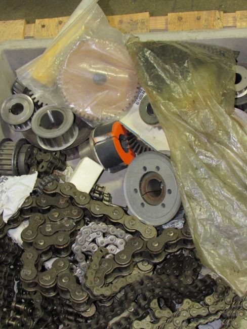 One lot assortment of chains and sprockets-- (LOCATED IN IOWA, RIGGING INCLUDED IN SALE PRICE) -- Optional prep for shipping $25.00 ***EUSA***