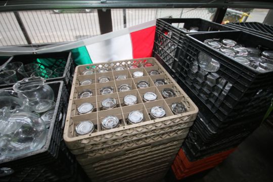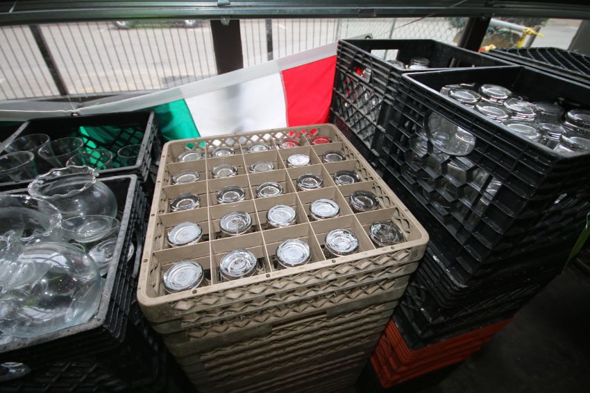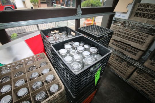 Lot of Assorted Glassware, Includes Glass Vases, Dinner Glasses, Wine Glasses, Bar Glasses, Includes (4) NSF Plastic Racks (NOTE: Located in (18) Plastic Milk Crates)