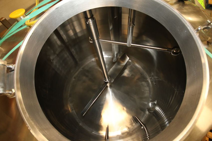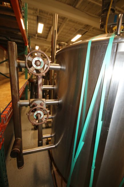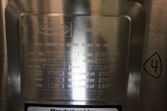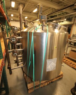 Walker 200 Gal Dome Top S/S Processor / Cheese Starter Tank, Model PZ, SN SPG-15138, with Bottom Sweep Agitator with Nord .37 KW @ 30 RPM Drive Motor - 230/460V 3 Phase, Baffle, Dual Sprayball, Top Hinged Mandoor, All S/S Bottom, Heating - 15 psig mawp @ 250 degree F, Cool - 100 psig @ 100 degree F, (Overall Diam. - 54" W x 7 ft H)(Rigging Fee $75)